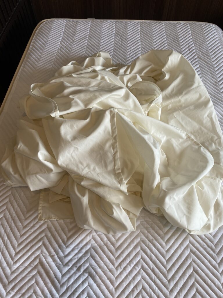 通常のリネンであればこの状態ではシワシワで、ベットメイクをしても見た目がかなりよろしくありません。